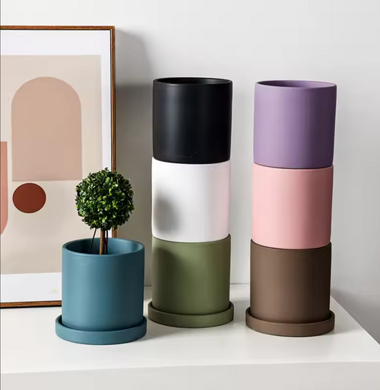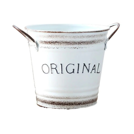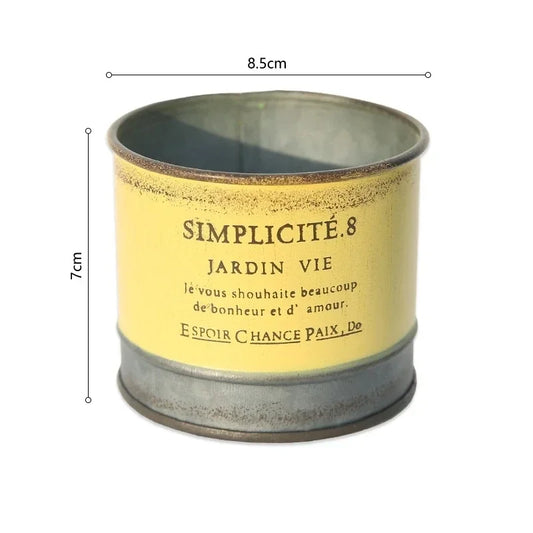Macetero redondo pequeño tipo cubo, de metal de hierro, estilo retro en colores amarillo y azul, jarrón para plantas ideal para decoración del hogar, jardín o patio